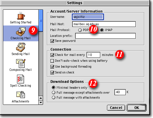 | 11)Tick the 'Check for mail every..' option and set it to at least 10 minutes |