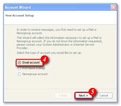 | 4)Ensure 'Email account' is selected. |